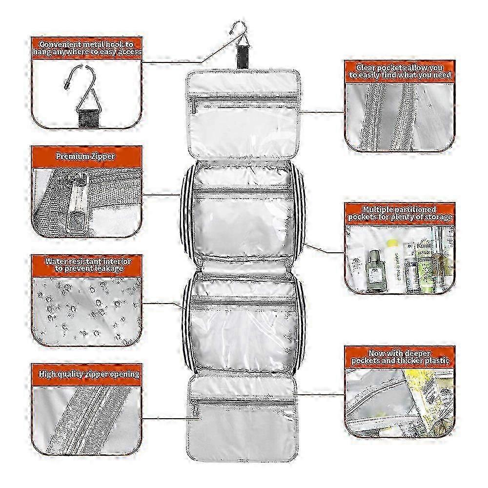 Waterproof Large Travel Toiletry Bag with 4 Compartments and a Durable Hook for Women's Makeup Organization