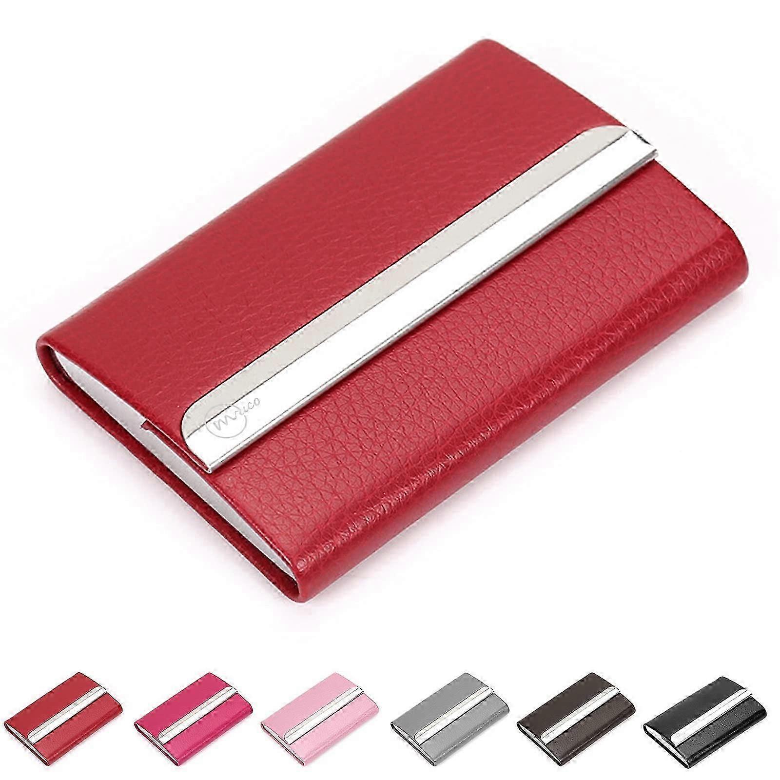 Premium Business Card Case - Metal PU Leather Holder with Magnetic Closure