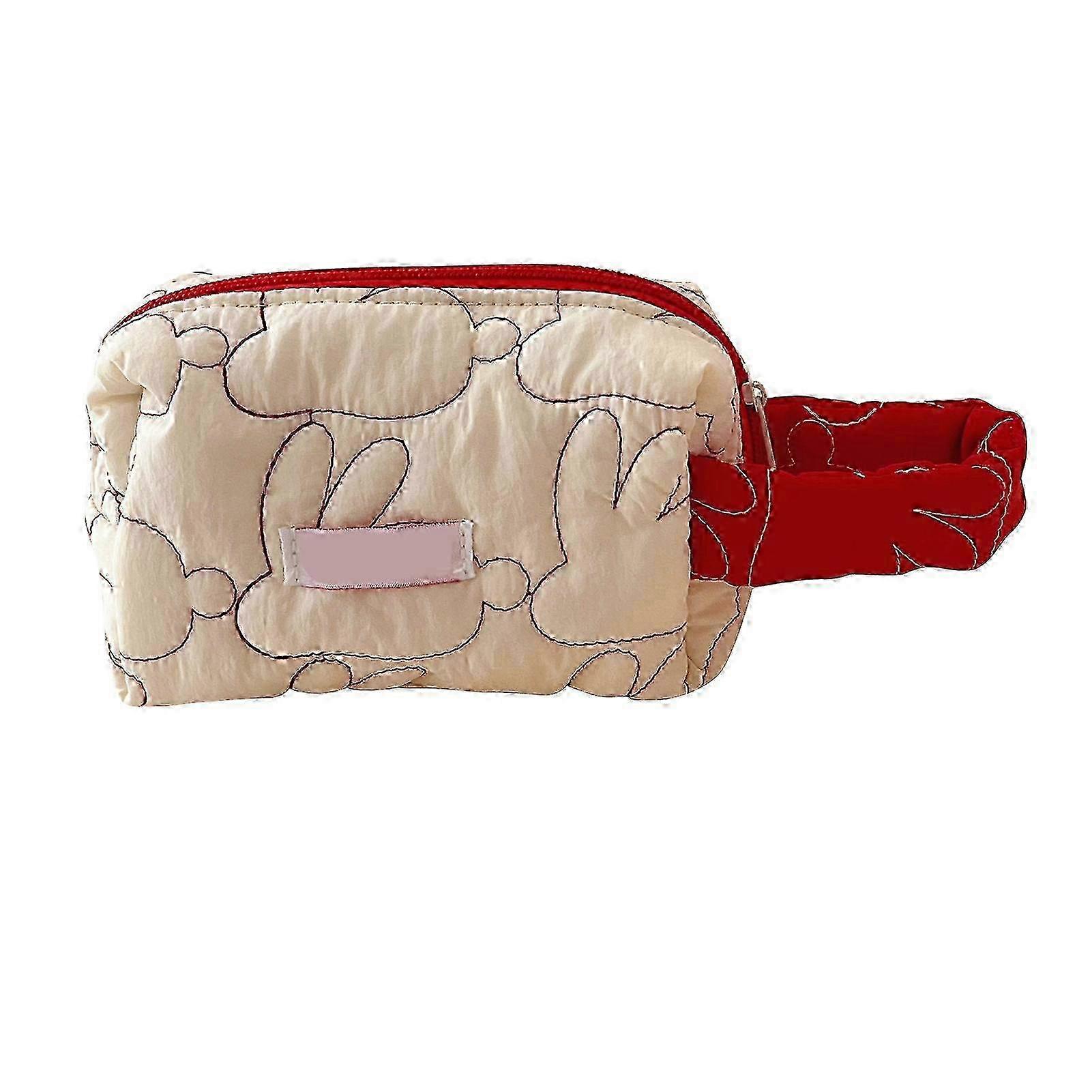 Makeup Storage Bag Rabbit Pattern Stitches Soft Cotton Zipper Closure Sturdy Handle Cosmetic Bag