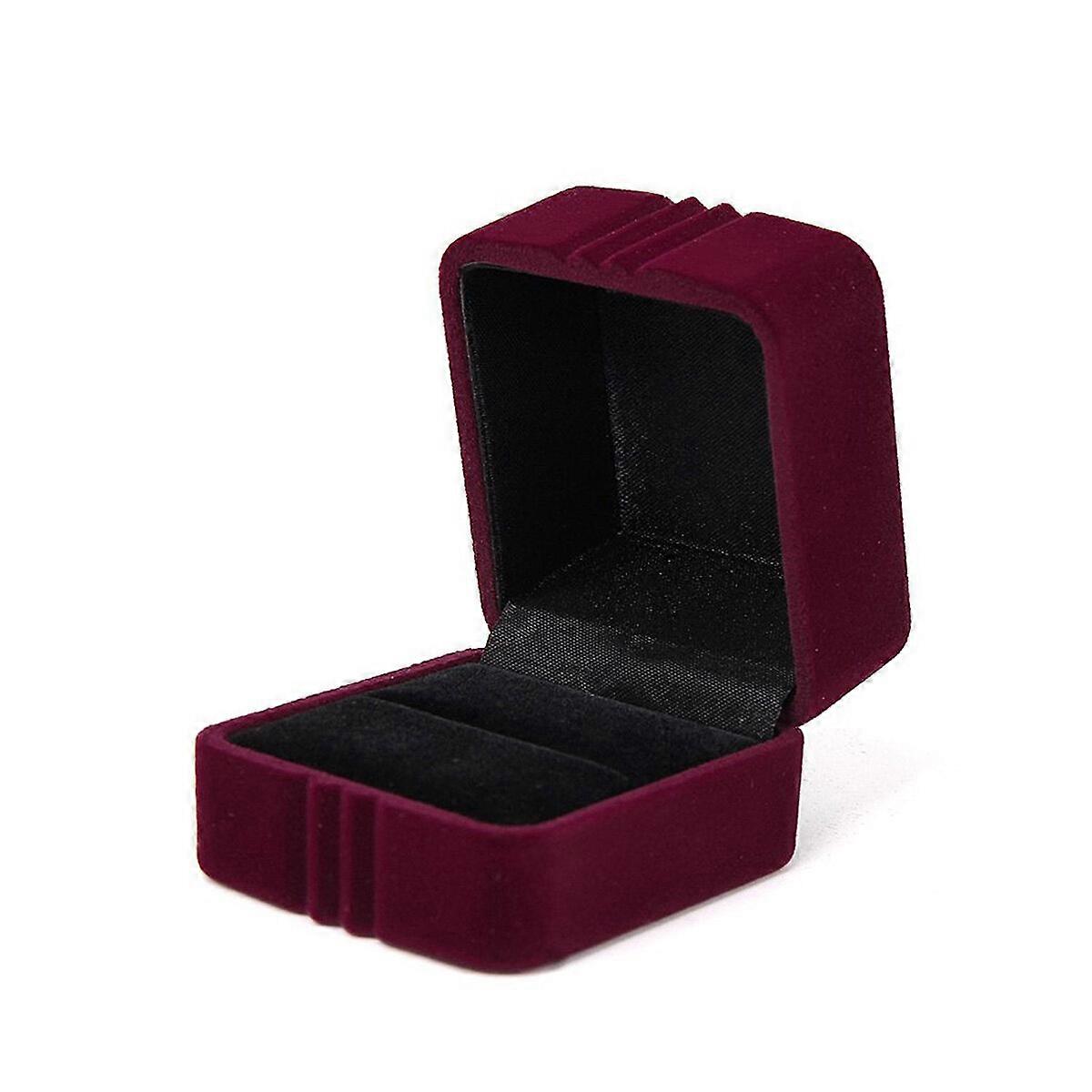 Small Square Ring Gift Box Jewelry Storage Case (Wine Red)