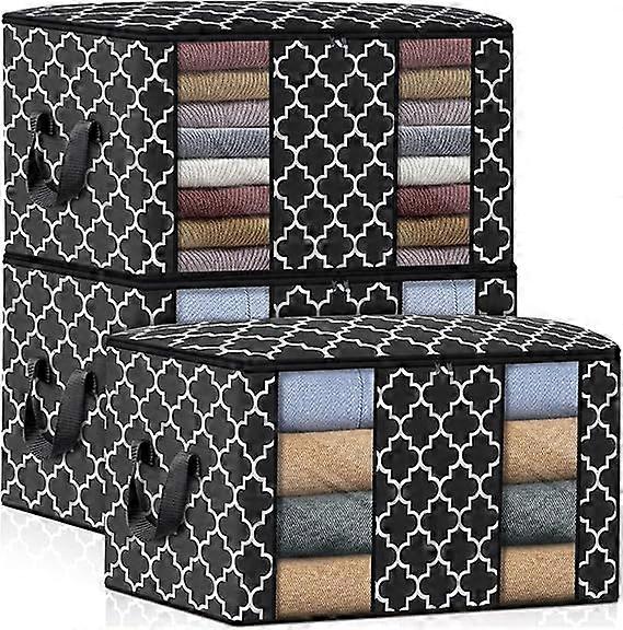 Moisture-proof material: This clothing storage box is made of non-woven material, which is moisture-proof, breathable, odorless and soft, which can protect your hands and items. Its exquisite patterns add more beauty to your home decoration.Transparent window and two-way zipper: There is a transparent window on the storage box fabric to quickly identify the stored items. Additionally, both feature two-way stainless steel zippers that close completely for easy access.Set of 3 storage bags, foldable clothing: a set of 3 storage bags, each storage bag is 63 x 45 x 36 cm in size, which can store duvets, pillows, bedding, blankets, stuffed toys, sweaters, off-season clothing or other items.Foldable: This foldable storage bag is foldable, lightweight and compact, you can store it at any time, and the convenience of folding makes it easy to store and transport. When not in use temporarily, you can fold it up and put it aside, and take it out when necessary.Versatility: The garment bag can be used in a closet, closet or under the bed. It is suitable for dormitories, attics, basements and utility rooms. The storage bag is very convenient and can be easily folded into a drawer or cabinet to save space.packing list: 3storage bags