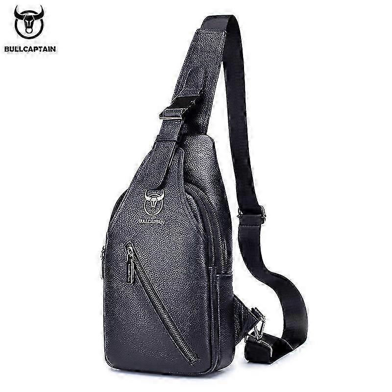 Men's Leather Chest Bag Multi-function Travel Storage Bag Men's Messenger Bag Hardware Zipper Leather Bag