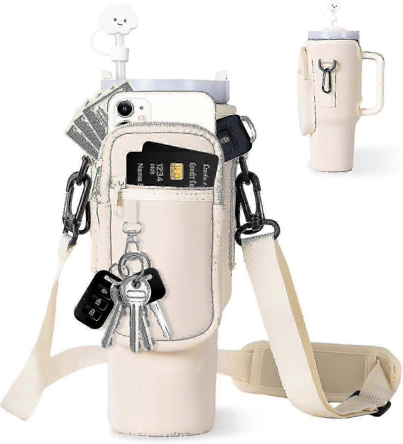 Water Bottle Carrier Bag With Phone Pocket For Stanley 40/30 Oz Tumbler Neoprene Water Bottle Holder Pouch With Adjustable Strap Bollus With Straw Cov