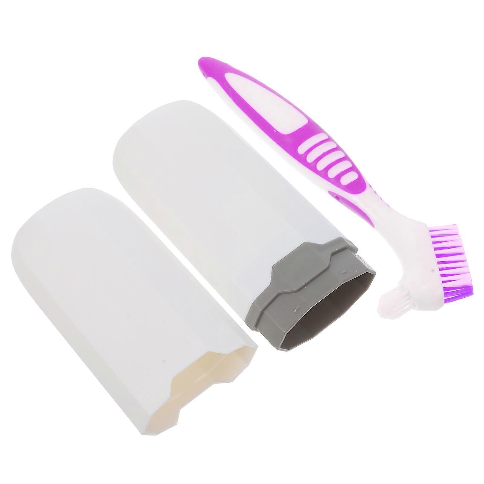 Portable Travel Toothbrush Holder Case for False Teeth, Double Sided Soft Bristle Brush for Sanitary Oral Hygiene Storage on Business Trips and