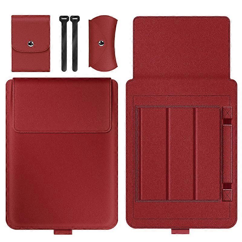 Laptop Stand Bag Portable Lightweight Ultra Thin Foldable PU Laptop Sleeve Case for 13in 14in Red for 13 14in