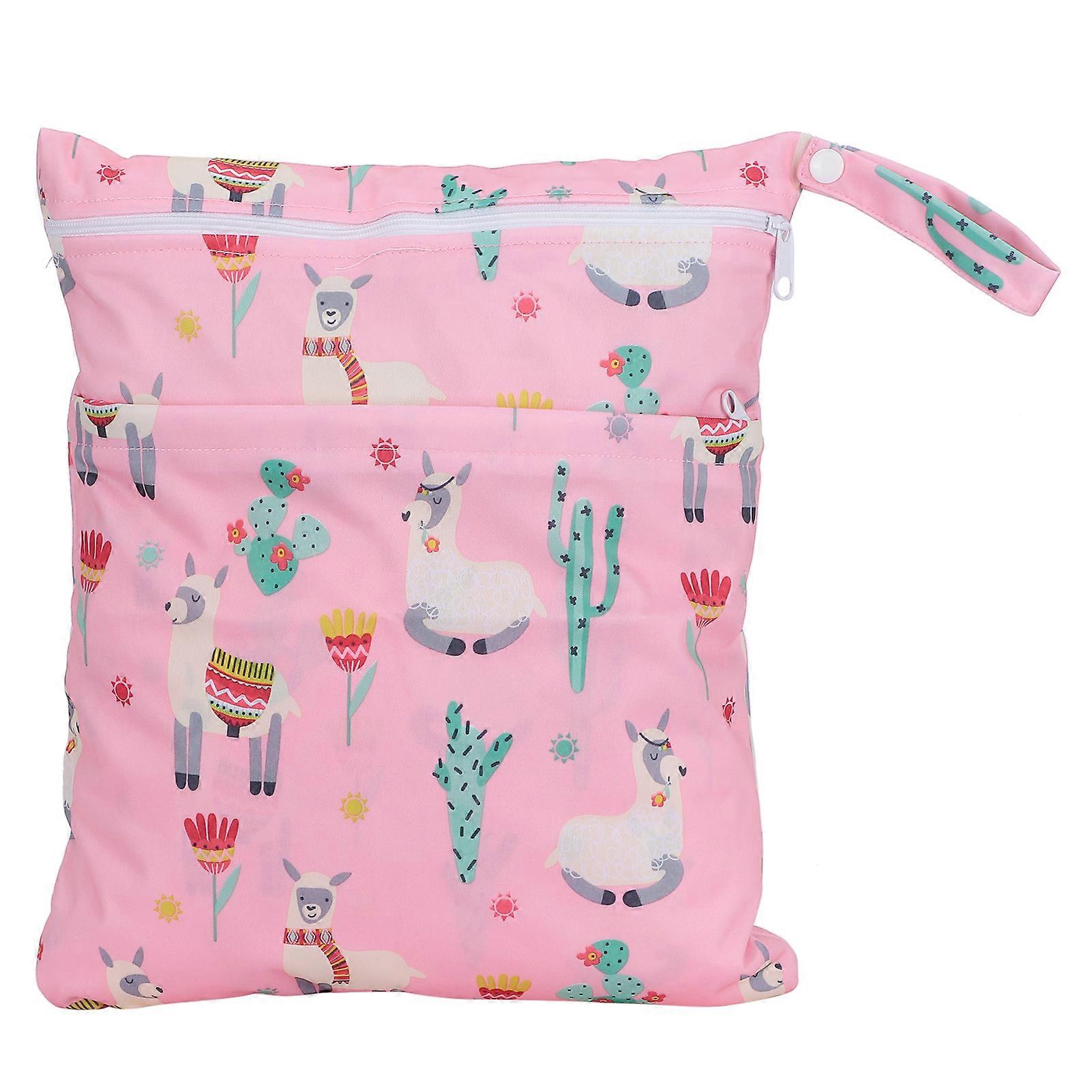 Feature: 1. There are two zippered pockets to separate wet and dry items. You can put them in the same bag. 2. Each bag has a handle, which can be hung anywhere, such as hooks, strollers, door handles, towel hooks, etc. 3. There are two‑sided printing of different cute animal patterns on the baby cloth diaper bag. Your kids will love it! 4. Not only for diaper storage, but also for wet dry clothes bags, travel storage bags, wash bags, storage bags, cosmetic bags, clothes bags, etc. 5. It is convenient for you to carry it to any occasion because it is lightweight and can be folded. Specification: Item Type: Baby Cloth Diaper BagMaterial: Knitted printed cloth, TPU waterproof membraneSize: Approx.35 x 30cm / 13.8 x 11.8inApplicable People: General. Package List: 1 x Baby Cloth Diaper Bag Note: Please note that if you use it for wet clothes, you must make sure to squeeze out the water before putting it in the bag. Do not put very wet items in the bag.