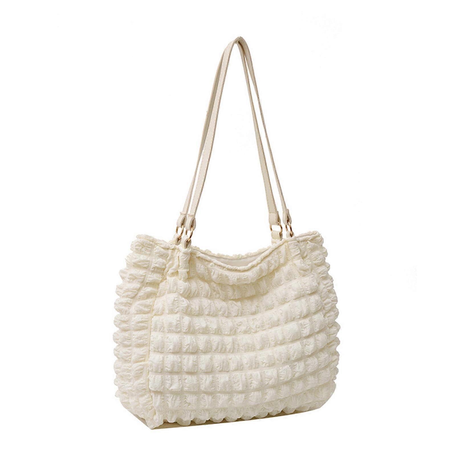 Ruched Design Satchel Bag Bubble Pleated Bag Shoulder Handbags for Girl Women Travel Tote Bag Lady Purse Large Capacity White