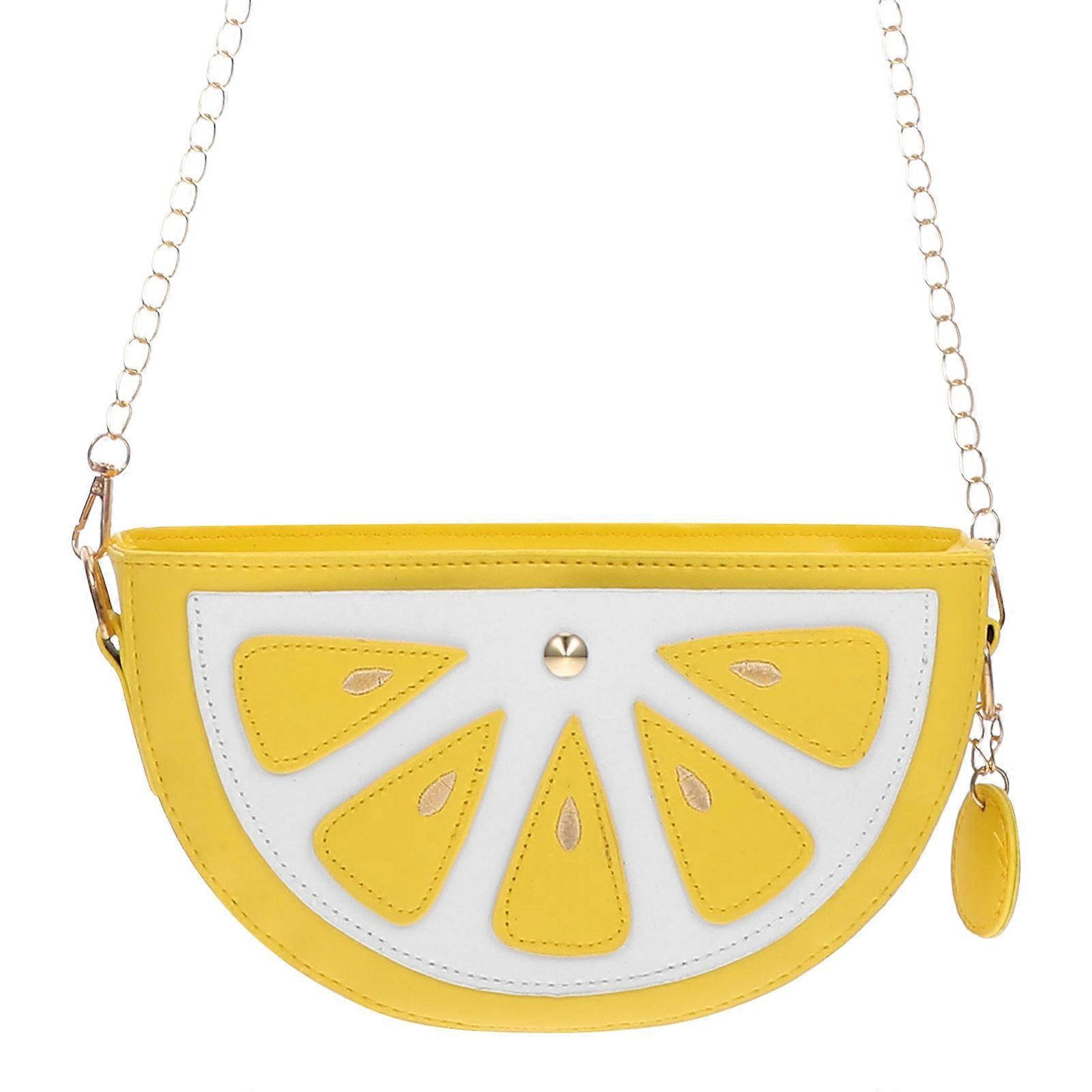 Description This is a fruit shaped women bag. The lemon fruit design is for women and girls. High quality PU leather with durable polyester lining. It is good for any occasions such as party, shopping, travelling. The Best choice as a gift for friends. Features - Color: As shown. - Material: PU. - Size: 23x13x7cm / 9x5.1x2.8inch. - The lemon fruit design is for girls. - It is good for any occasions such as party, shopping, travelling. - The Best choice as a gift for friends. - It is not easy to peeling, deformed and tear, always in good shape. - High quality PU leather with durable polyester lining. Package list: 1 x Sweet Bag Women Fruit Packet with Gold Chain Shoulder Bag Crossbody Bag Girl Lemon Bag