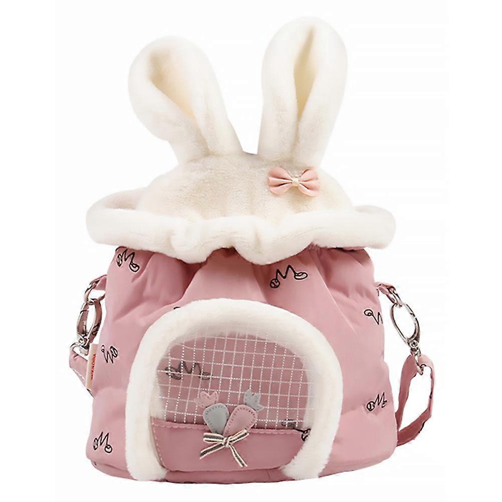 Soft Plush Hamster Travel Carrier Bag with Rabbit Ear Design – Comfortable Crossbody Pet Bag for Small Animals, Squirrels, and Rabbits – Cute Pink