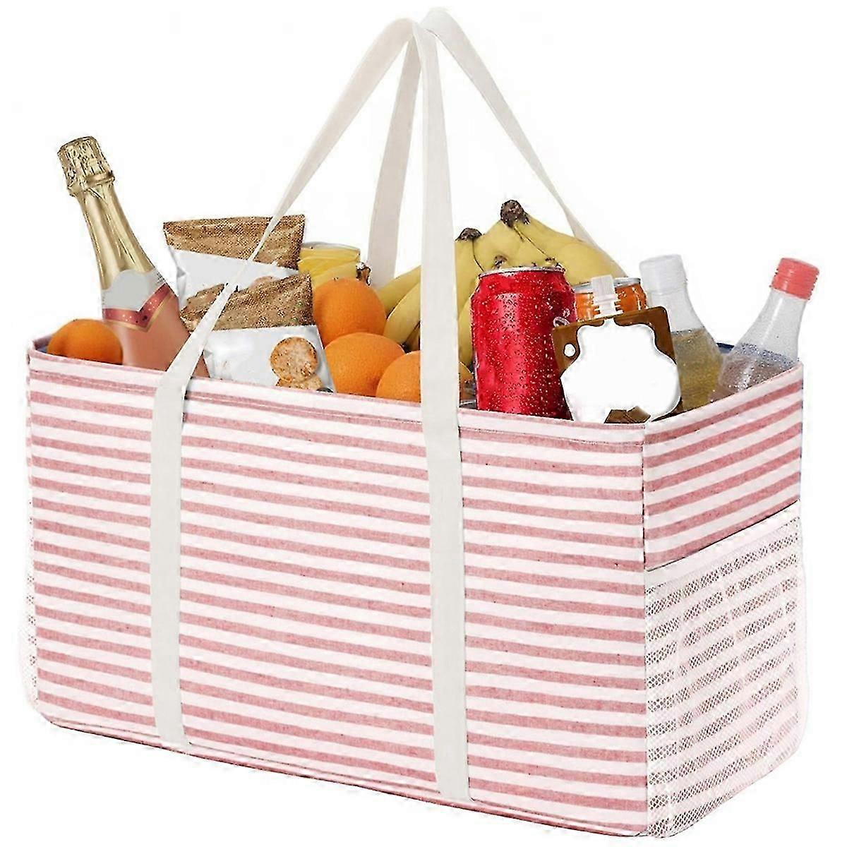 Extra Large Tote Bag, Reusable Grocery Bags with Metal Wire Frame and Handles, Standing Utility Shopping Bags Pink