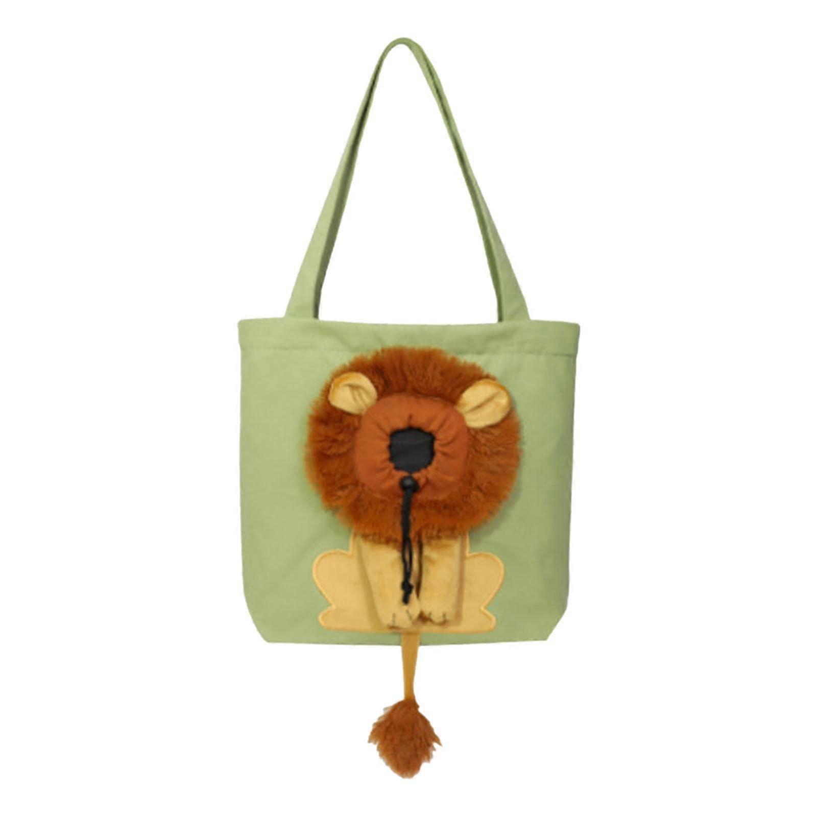 Pet carrier bag, lionshaped with handle, cute bag, handbag for outdoor walks, kitty, small animals, small dogs, cats, green large