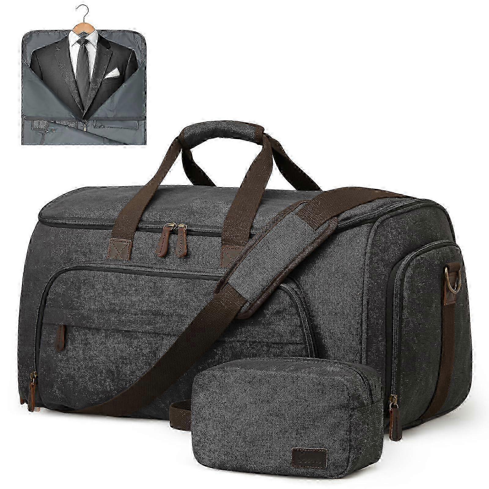 50 liter black 2-in-1 carry-on travel bag, convertible to suit bag, with toiletry bag