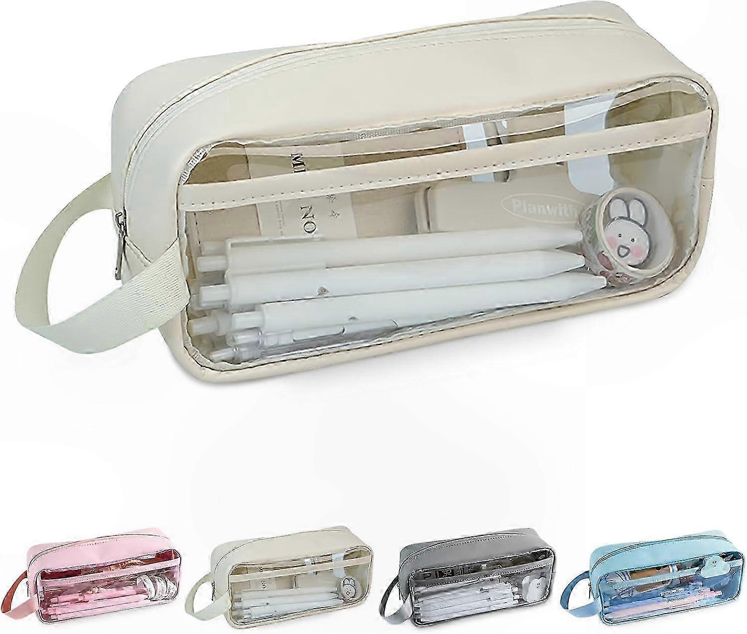 Transparent PVC Zippered Pouch - Waterproof Toiletry Bag, Travel Makeup Organizer & Cosmetic Storage (Beige)