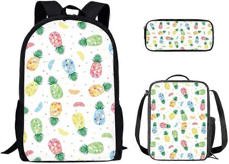 Cartoon Pineapple Kids Backpack with Lunch Bag and Pencil Case Neon Colored Pineapple Casual Backpacks for Elementary Student Hawaii Tropical Fruit Li