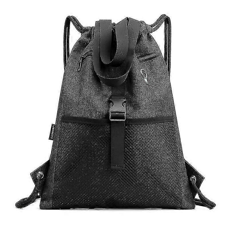 Drawstring Backpack Large 15*12.5 Fitness Cord Drawstring Bag With Wide Pockets Black