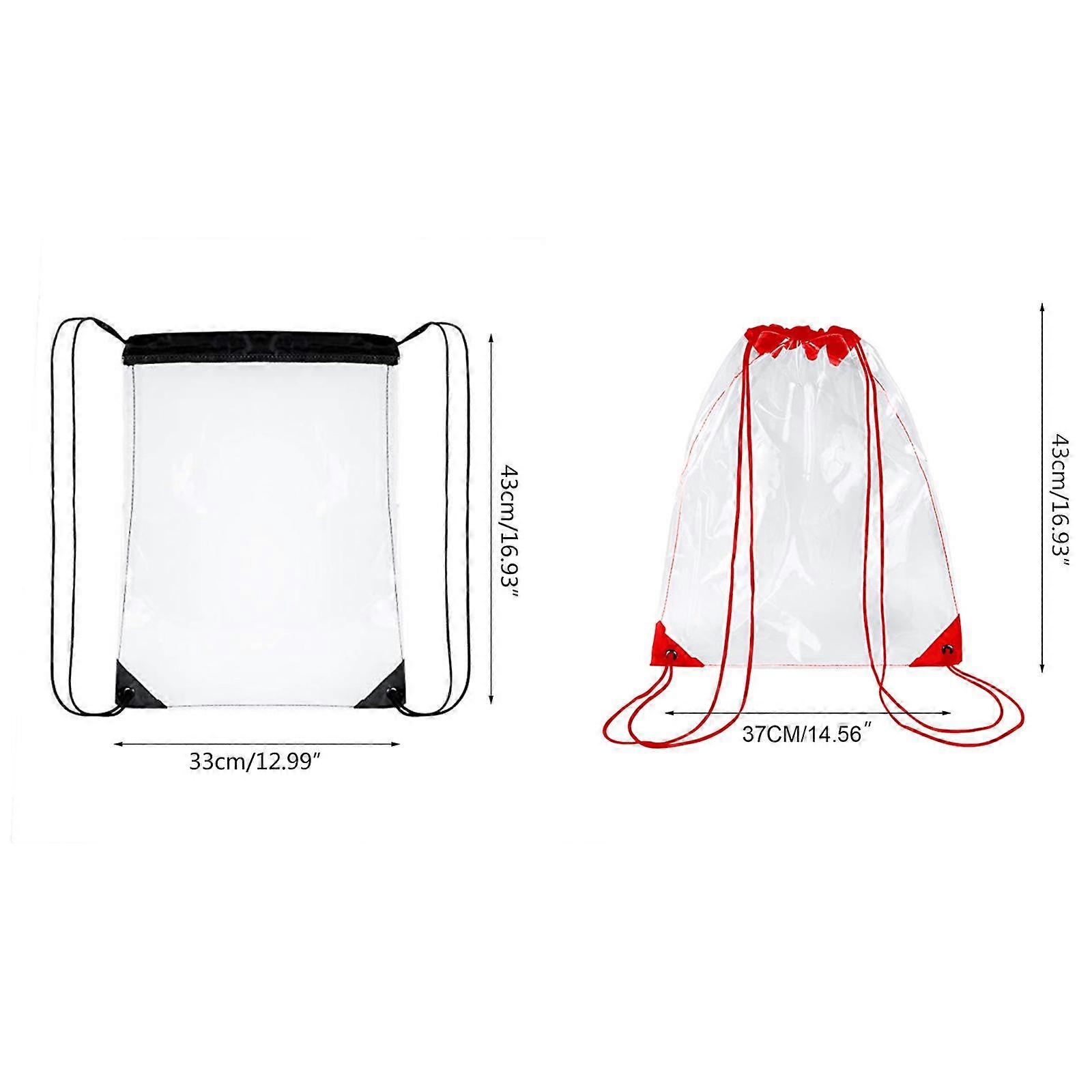 New Transparent Drawstring Backpack School Tote Gym Bag Sport Pack Black with mesh bag