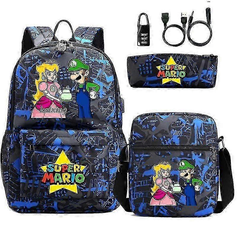 Backpack Super Mario 3pcs Teens Boys Girls Backpack Cool Capacity Waterproof Schoolbags Students Laptop Mochilas Back To School