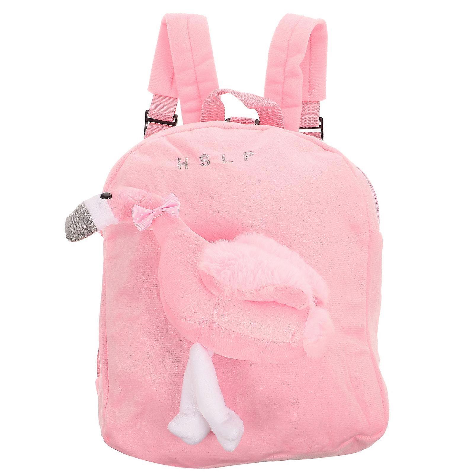 Flamingo Backpack Creative Plush Backpack Portable Travel Bag Casual Storage Bag for Girls Kids (Dark Pink)