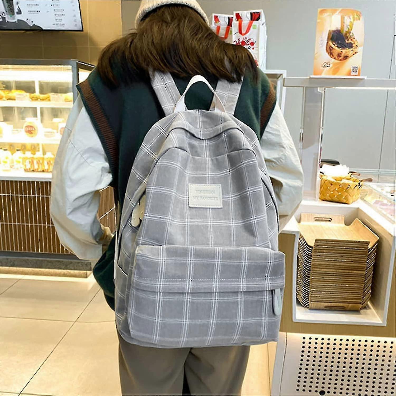 Backpack Kawaii Plaid Backpack Sage Green Backpack Girls School Backpack Satchel (grey)
