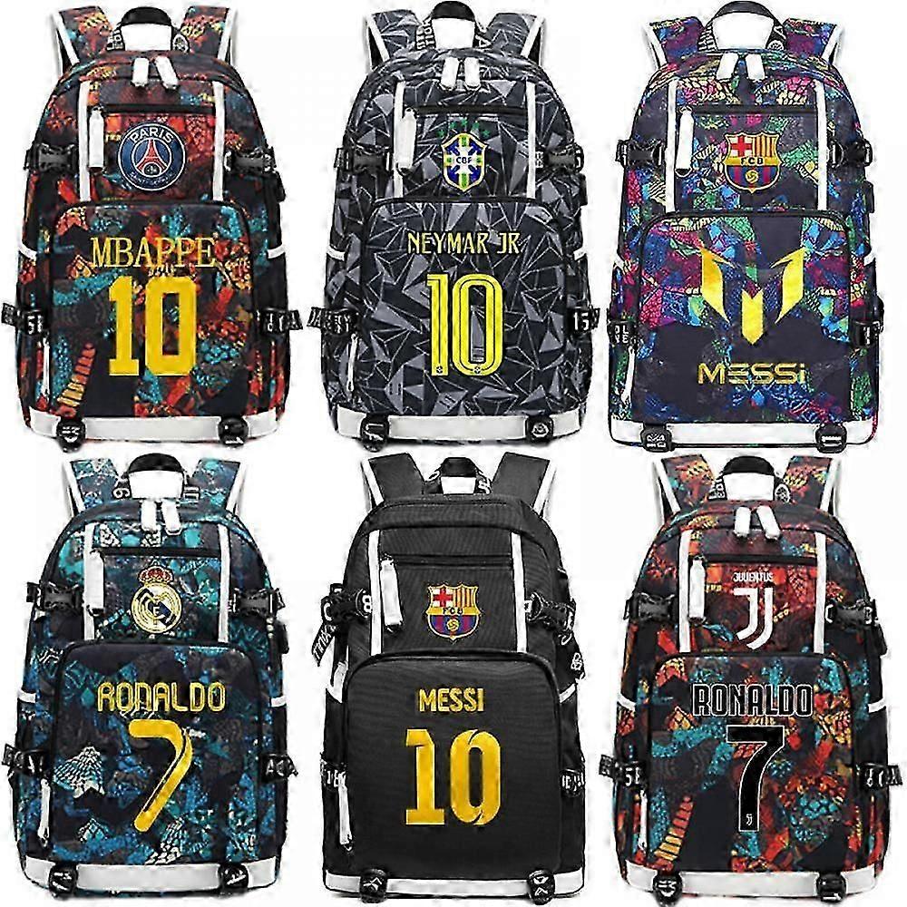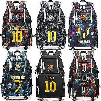 Football Star Large Capacity Backpack With USB Charging Port School Bag, Suitable For Sports, School
