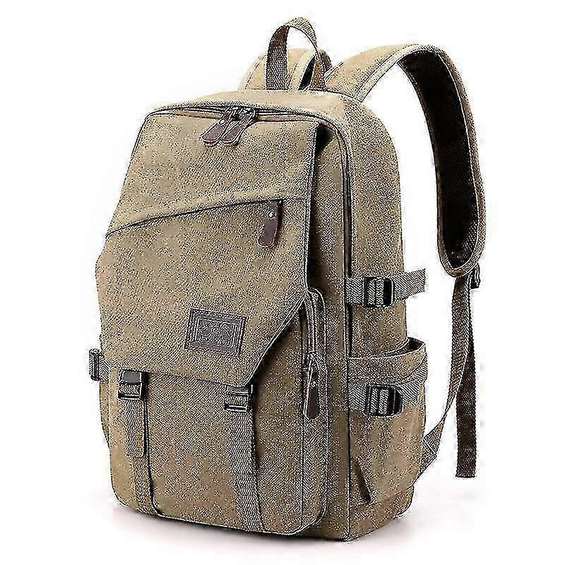 Unisex simple canvas backpack and laptop bag--khaki