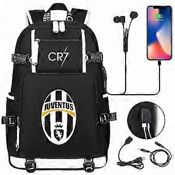 حقيبة ظهر CR7 - شحن يو اس بي ، اسود ، حقائب مدرسية ذات سعة كبيرة للشباب - لاب توب سفر واسع مقاوم للماء موتشيلاس للرجال والإناث