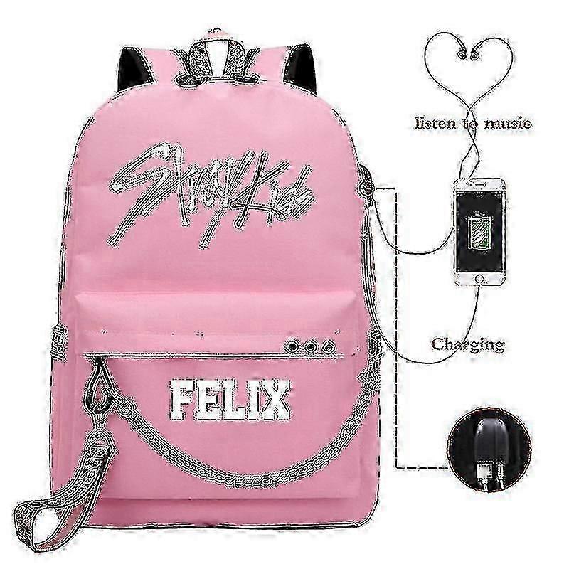 Korean Style USB Backpack - SJJYV Stray Kids Bookbag, Back To School Boys Girls Fans Gift Bag Mochila
