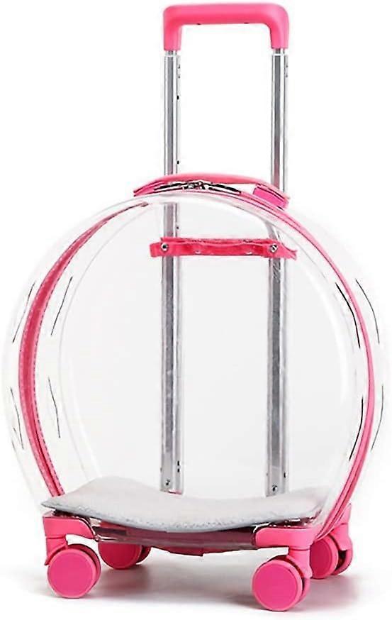 Transparent Pet Carrier Trolley Suitcase Waterproof, Rubber Wheels, Pink, For Small to Medium Pets
