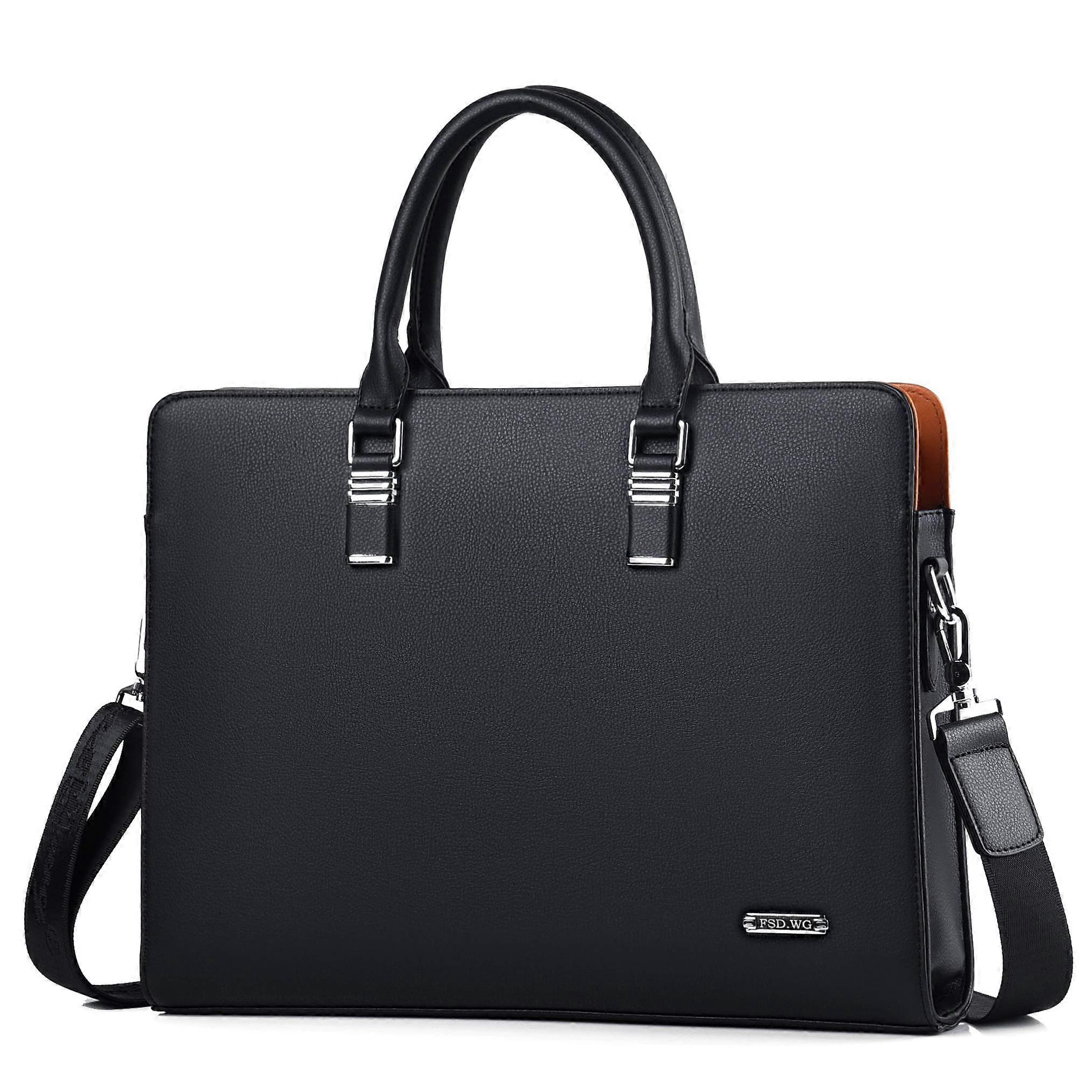 Men's Business Bag, Waterproof Leather Briefcase, Shoulder Laptop Business Bag for Business, School, Travel, Removable, Black L Black