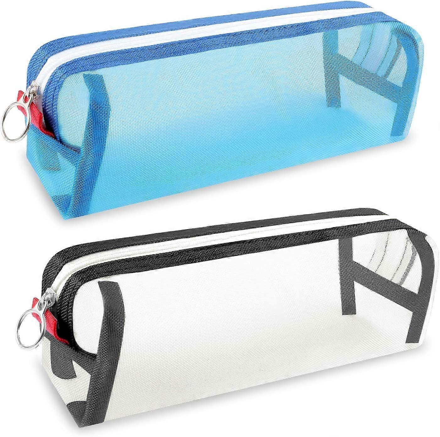Clear Pencil Pouch, Transparent Zipper Pencil Pouches See Through Pencil Case for Exams, Office, Travelblack, blue2pcs
