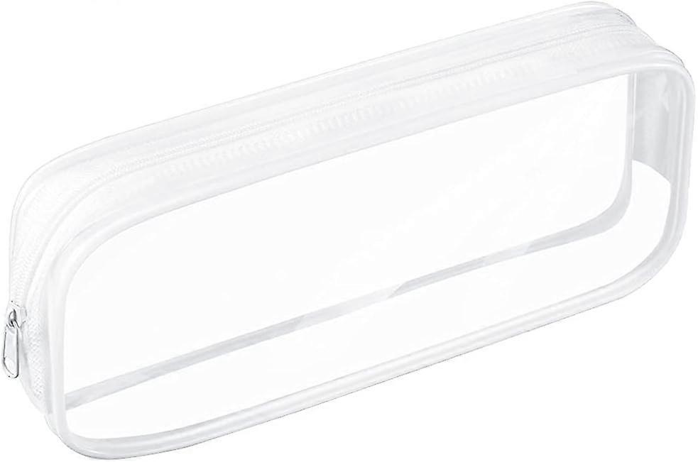 Clear Pencil Bag, Exam Pencil Case, Waterproof PVC Zippered Cosmetic Storage Pouch, Travel Luggage Make up Cosmetic Bag pen box gift (White)