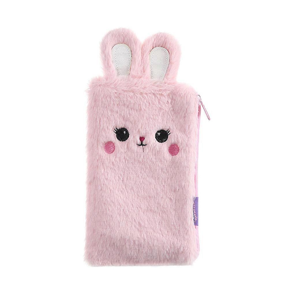 Light Pink Plush Pencil Bag Bunny Ear Design Cosmetic Bag School Office Use 21.5*13.5cm Coin Purse 1Set