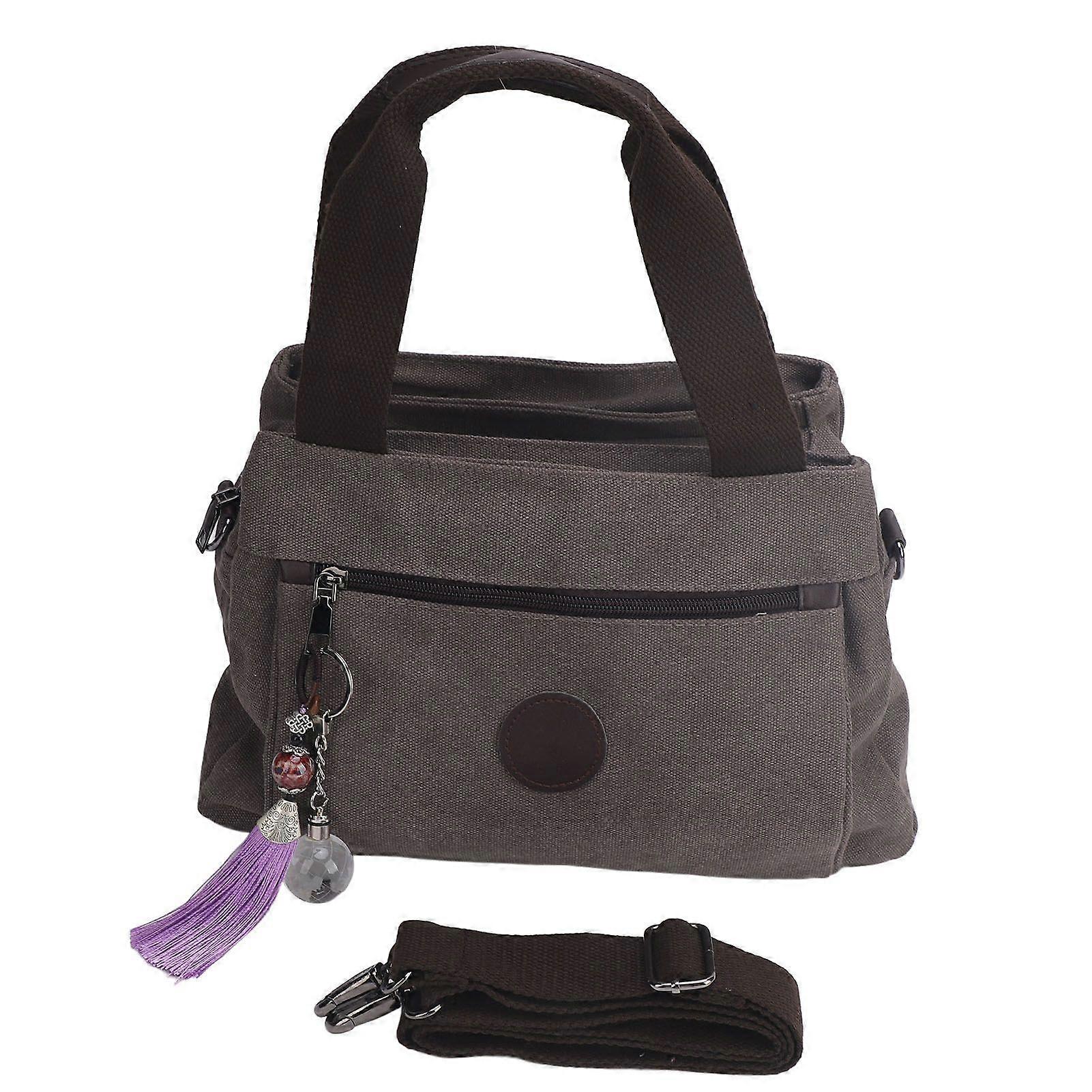 Vintage Canvas Bag Large Capacity Casual Multi Compartment Canvas Handbag for Women Gray