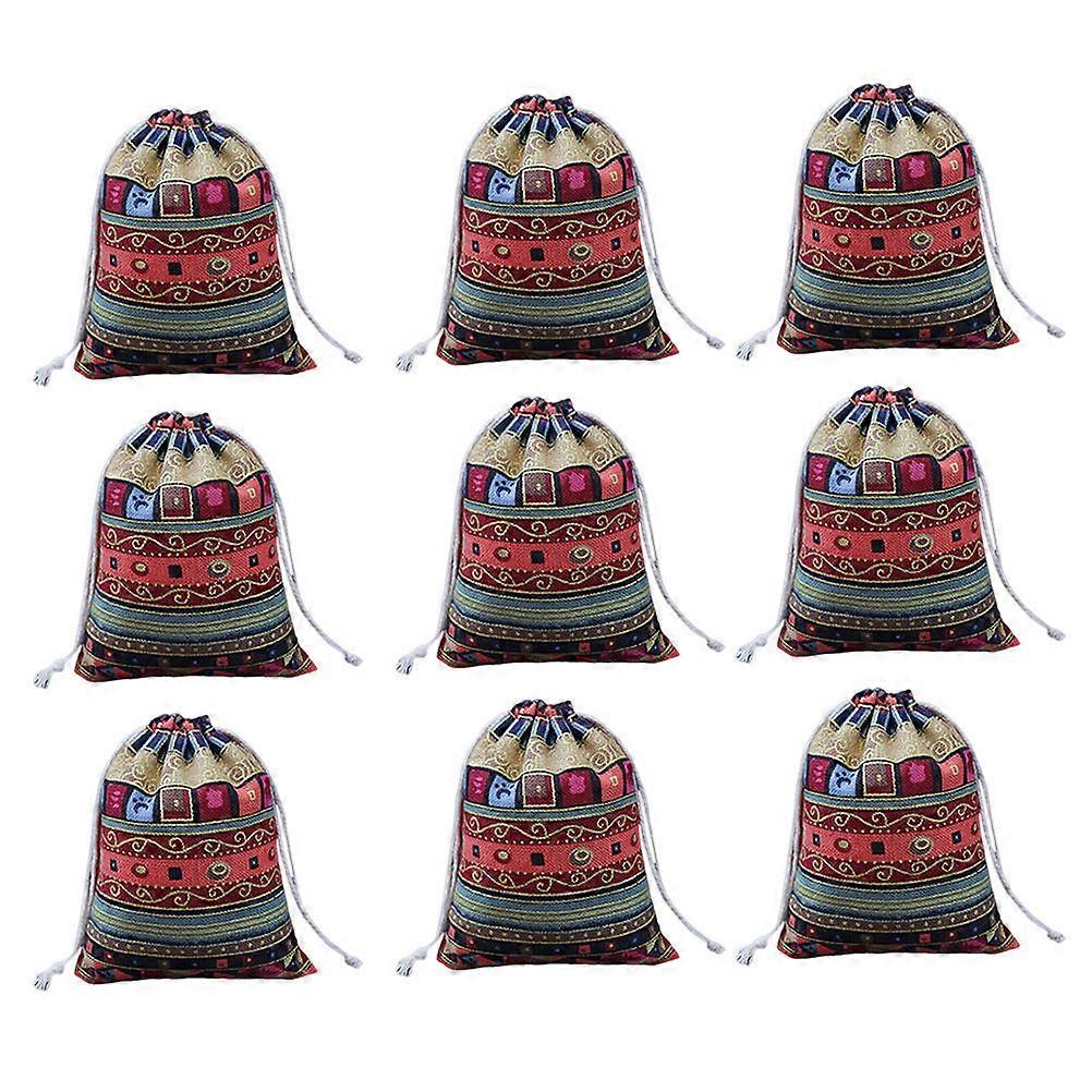 Chinese Fabric Bag Embroidered Drawstring Pouch Closet Storage 10x12 Cm 10Pcs