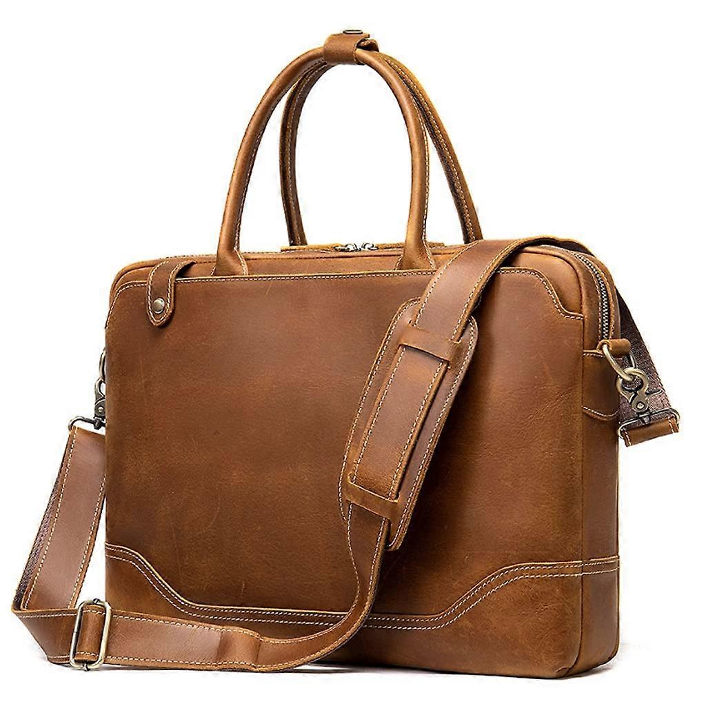 Shoulder Bag Laptop Bag 14 Inch Cowhide Brown 39x29cm Men Briefcase Style Computer Bag