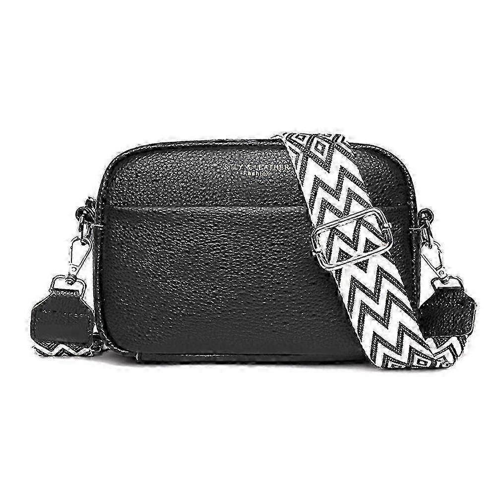 Women's Leather Wide Strap Handbag Shoulder Bag Modern bags with wide shoulder strap, black, handbags