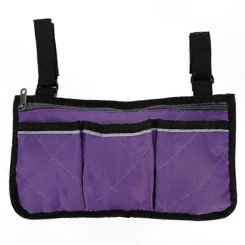 Large Capacity Wheelchair Armrest Bag with Multiple Pockets Storage Organizer Purple