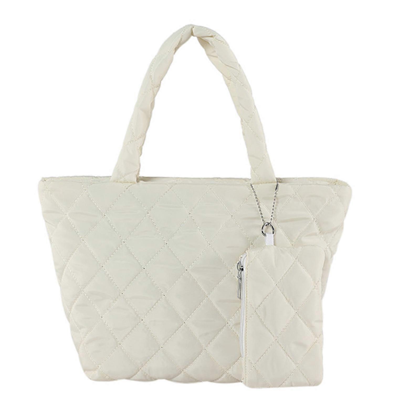 Versatile Nylon Down Bag for Women Handbag with Coin Purse Suitable for Travel Hiking and Shopping White