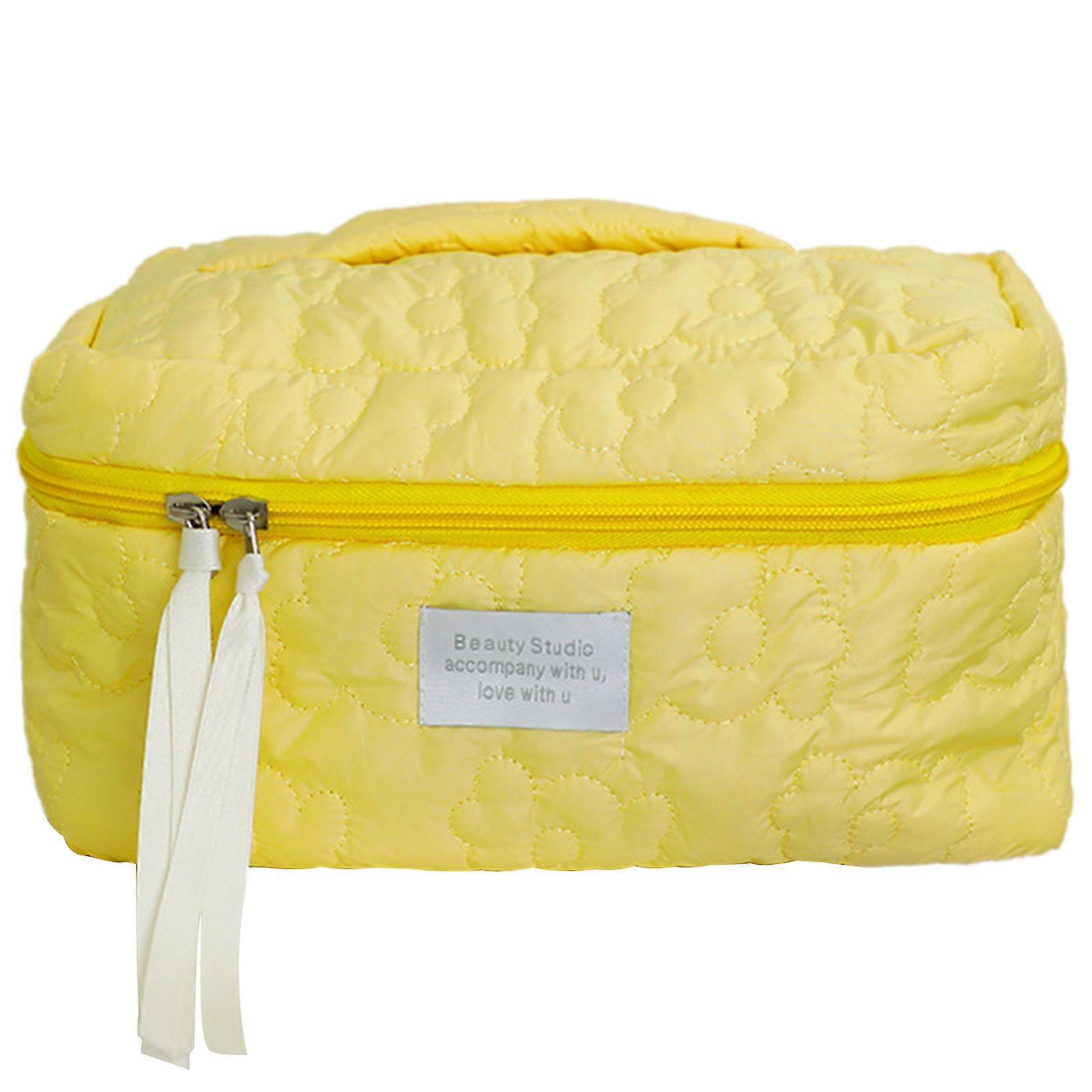 Women Handbag Makeup Organizer Toiletry Bag Flower Cosmetic Cases Large-Capacity Cosmetic Storage Pouch with Zipper Yellow