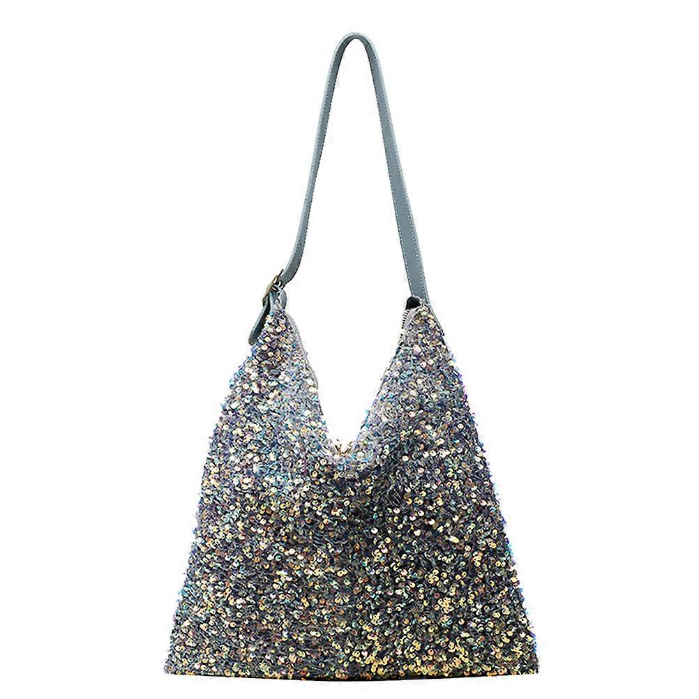 Sparkly Sequins One Shoulder Tote Bag for Women – Lightweight, Durable & Stylish Handbag for Daily Use and Travel – Chic Blue