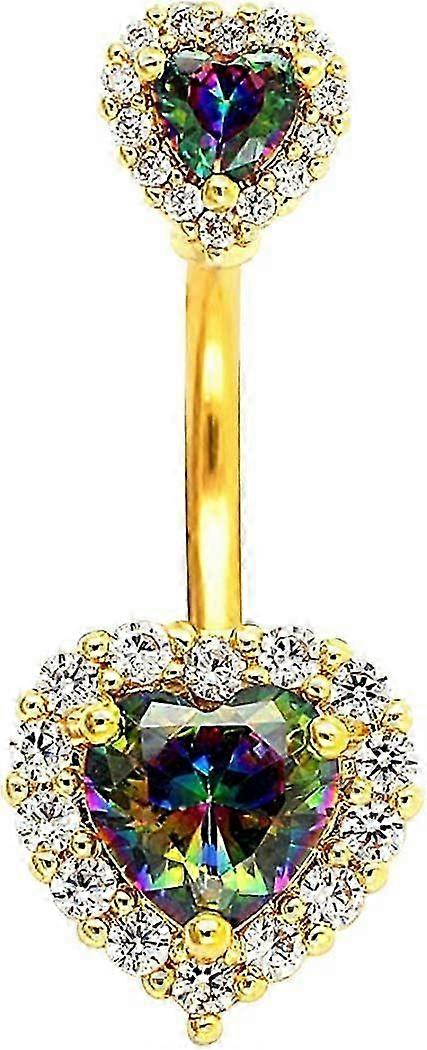 Belly Rings 316L Surgical SS PVD Plated Multicolor Heart CZ Navel Piercing Shiny Belly Button Rings
