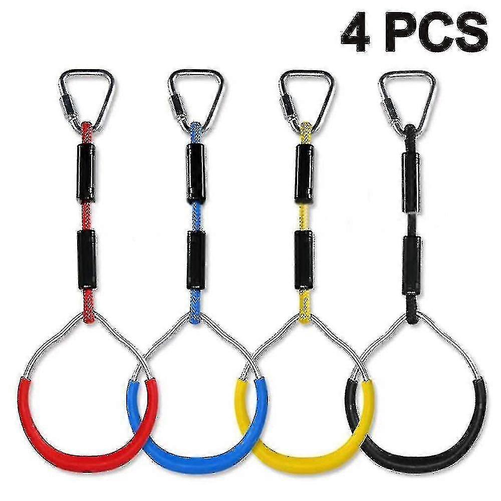 Colorful Swing Gymnastic Rings - 4 Pack Outdoor Backyard Play Sets & Playground Equipment For Ninja Course, Monkey Ring, Climbing Ring, Obstacle Ring