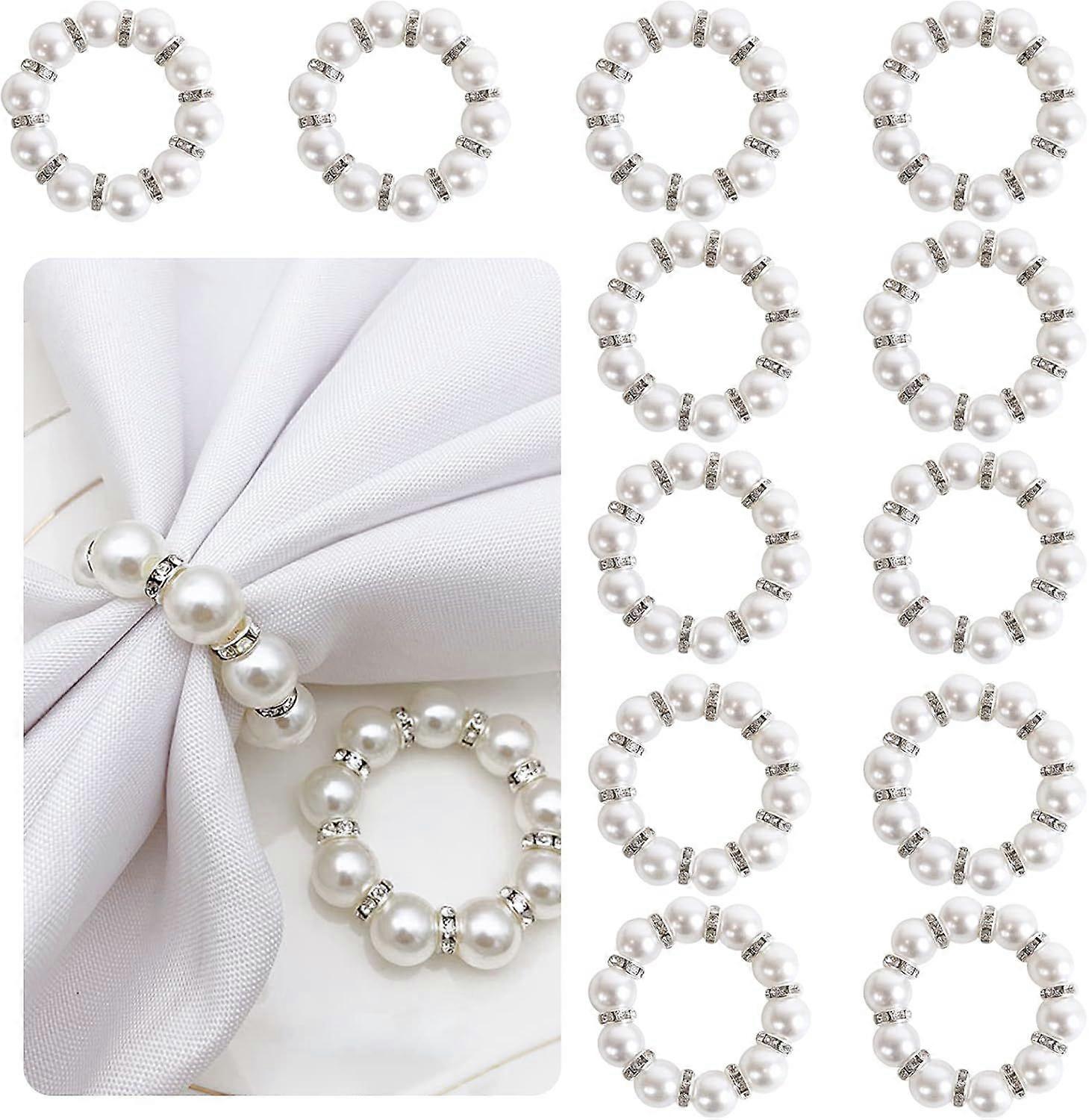 Pearl Napkin Rings, Sparkling Rhinestone Napkin Rings 12pc