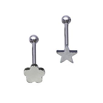 Tongue ring 14ga surgical steel barbell flower & star design 2 pack