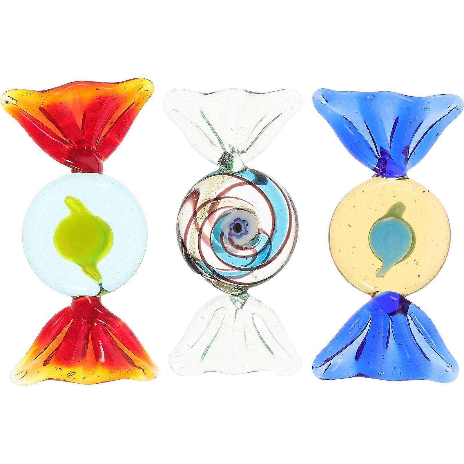 Miniature Candy Glass Sweets Various Glass Candy Ornaments Indoor Outdoor Use Lovely Design 5.5x2.5cm 3Pcs