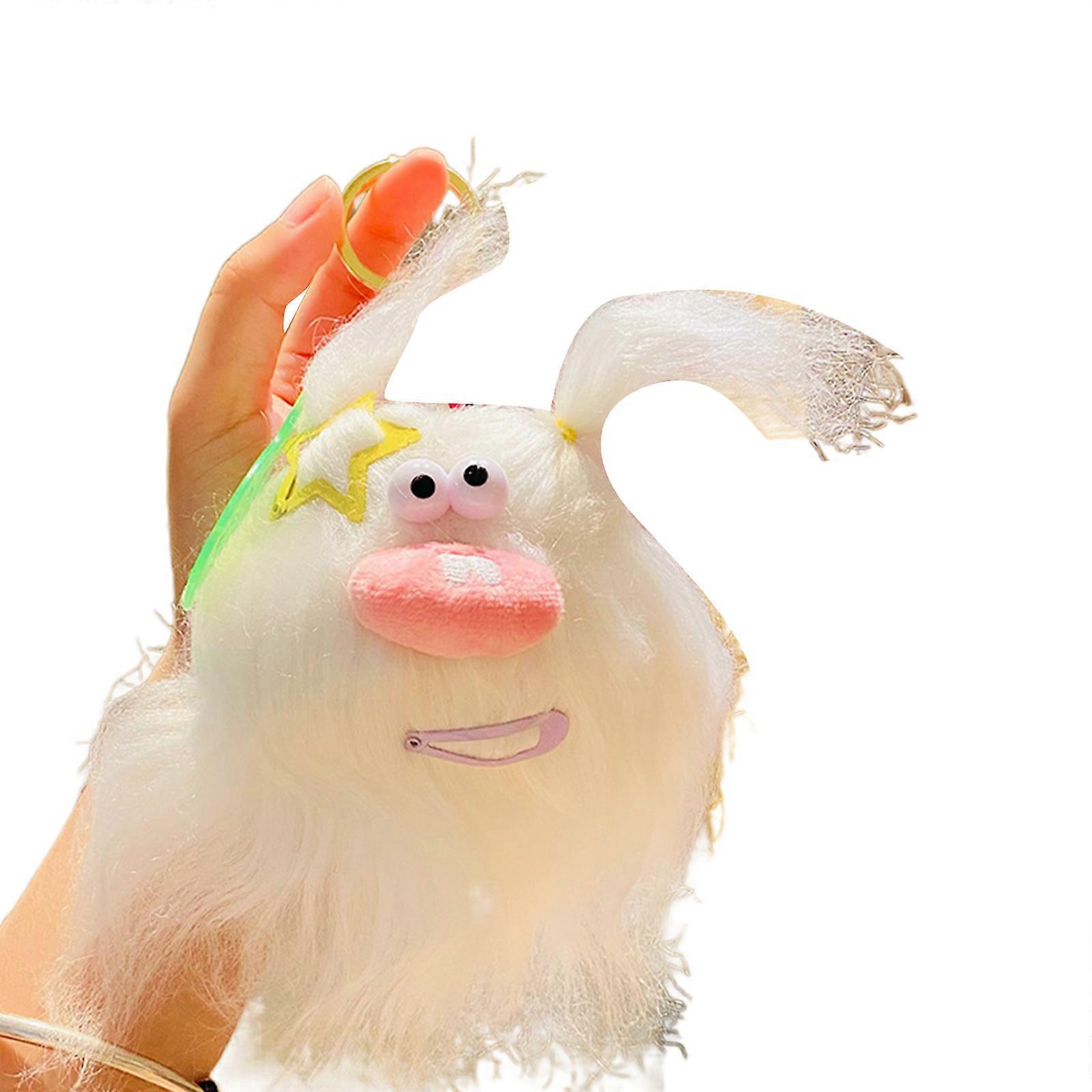 Sweet Long Hair Monsters Keychain Cartoon Plush Doll Keyring Exquisite Long Hair Doll Keyholder for Wmen Teenagers Kids White