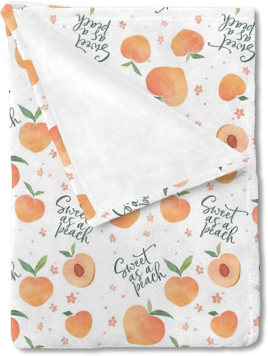 Sweet As Peach Summer Vibe Fruit Baby Blanket for Girls Gift, Peachy Floral Flannel Fleece Nursery Bed Blankets, Soft Warm Lightweight Newborn Infant