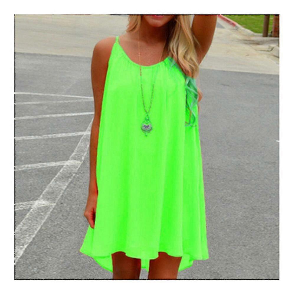 Suspender Checks Splicing Backless Beach Sleeveless Chiffon Dress