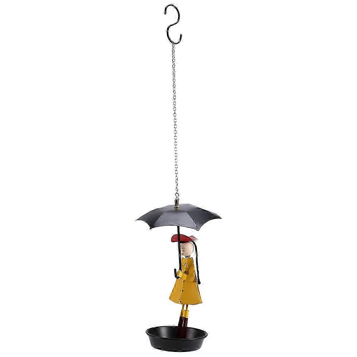 Bird Bath Hanging Bird Feeding Girl with Umbrella Tray Patio Garden Decoration Outdoor Gardening Out