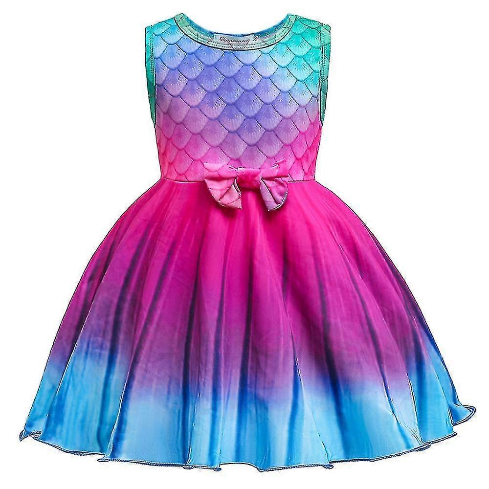 Mermaid Birthday Party Sleeveless Skater Swing Dress Sundress For 2-10y Kids Girl